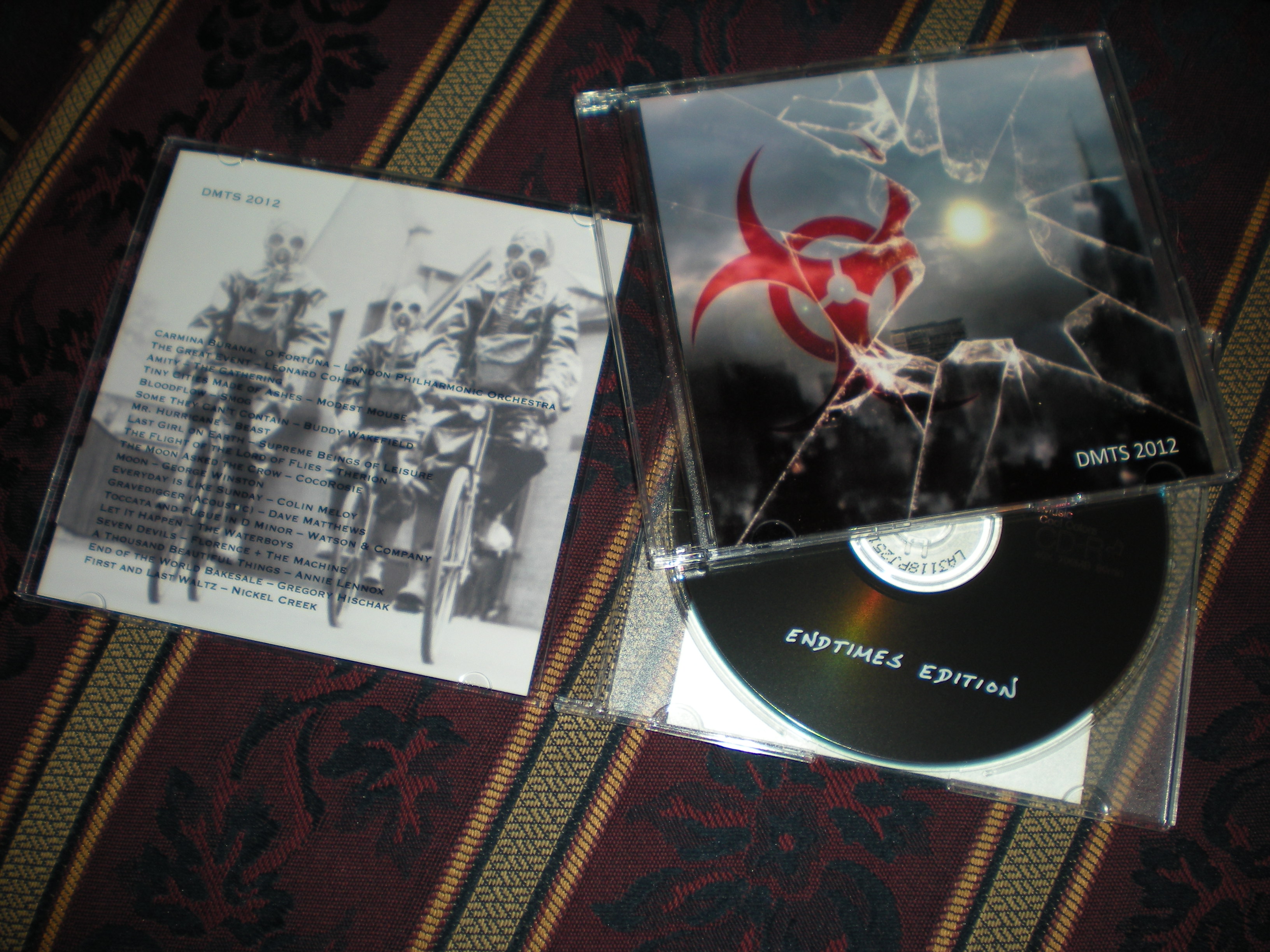 I’m a member of the Dictionary MixTape Society. We exchange mixtapes (yeah yeah, I know what you’re thinking. Tapes are outdated. You’re right. Really, they’re cd’s these days, but “mix cd” just doesn’t have the same ring to it) annually based on a theme designed by our fearless leader, Levi “Bubba” Greenacres. This year’s theme: Endtimes Edition … or … music for the fallout shelter.